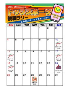 トップス広島加盟チームの試合を観戦して、スマートフォンでスタンプを集めて応募すると、豪華賞品が抽選で当たる『2025-2026seasonトップスポーツ観戦ラリー』の1月対象試合を紹介します!!
